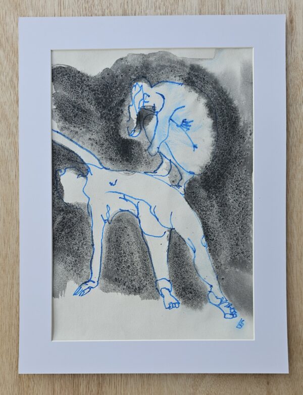 A3 Aquarelpotlood en inkt in passepartout, unframed.